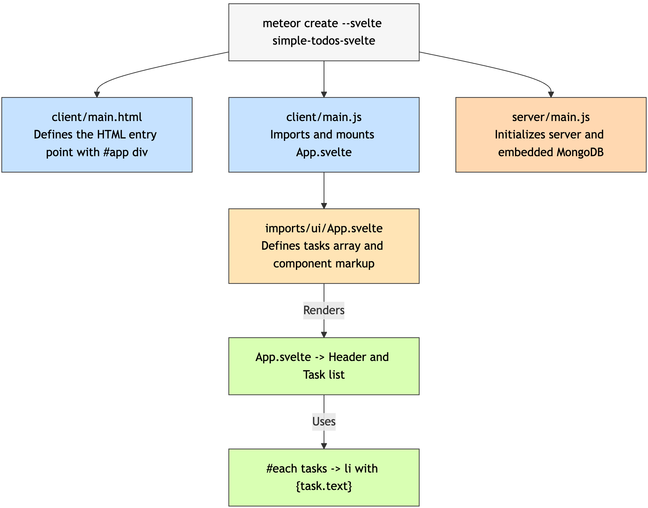 meteor create --svelte simple-todos-svelteMeteor will create all the necessary files for you.